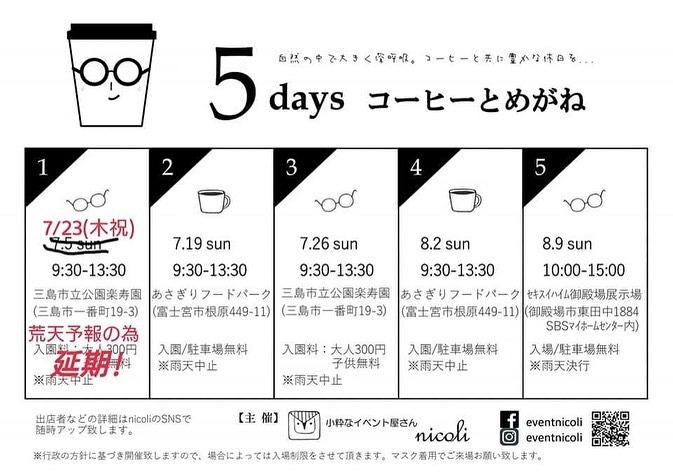 のイベントも出店予定でしたが、天候によってはお休みする場合がございます。