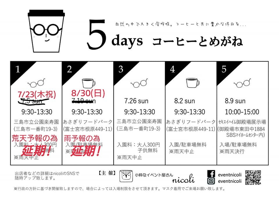 *出店予定*7/23「コーヒーとめがね」 7/24・25「御用邸クラフトフェスタ」