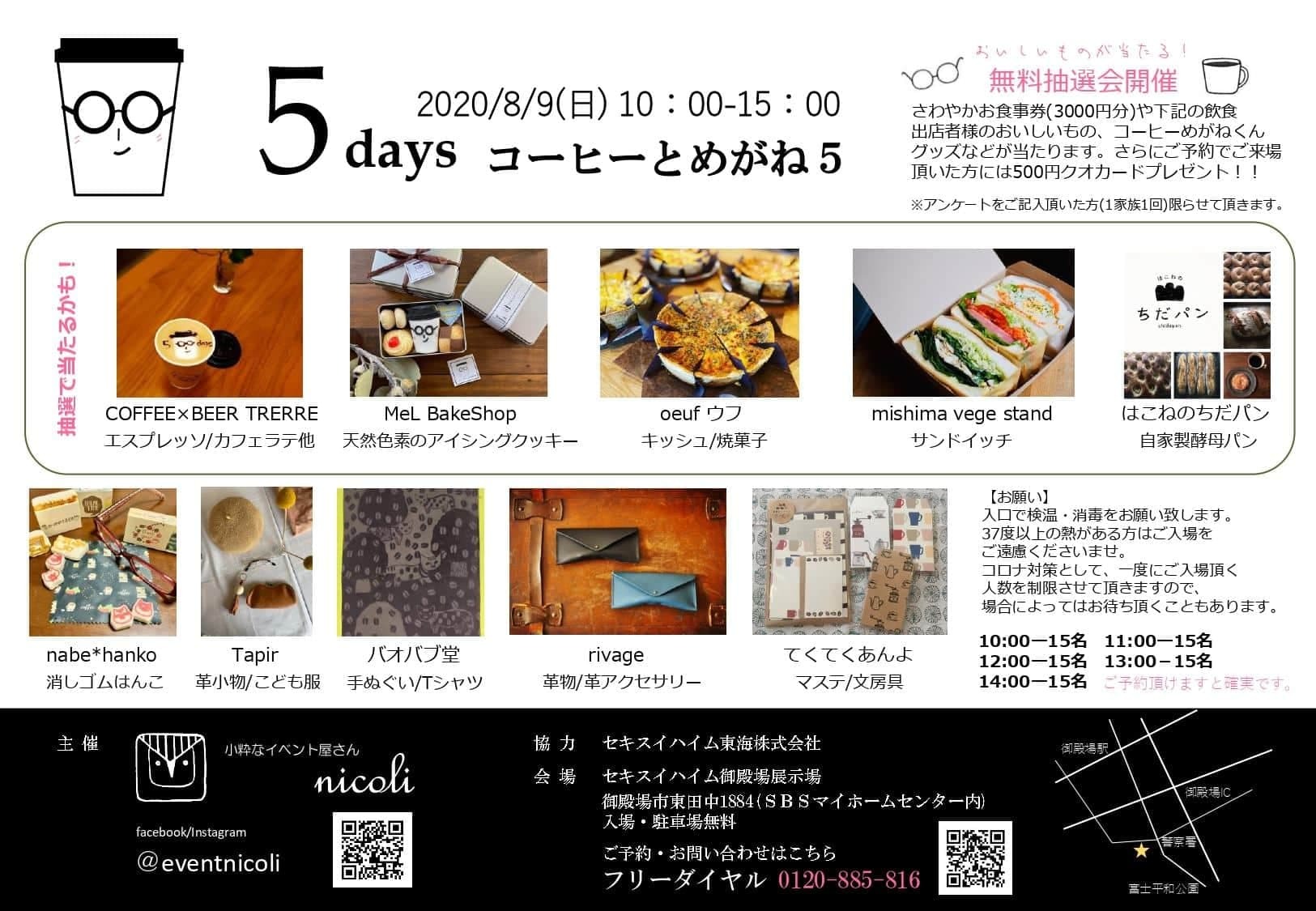 ↓8/9は『コーヒーとめがね』(セキスイハイム御殿場展示場)