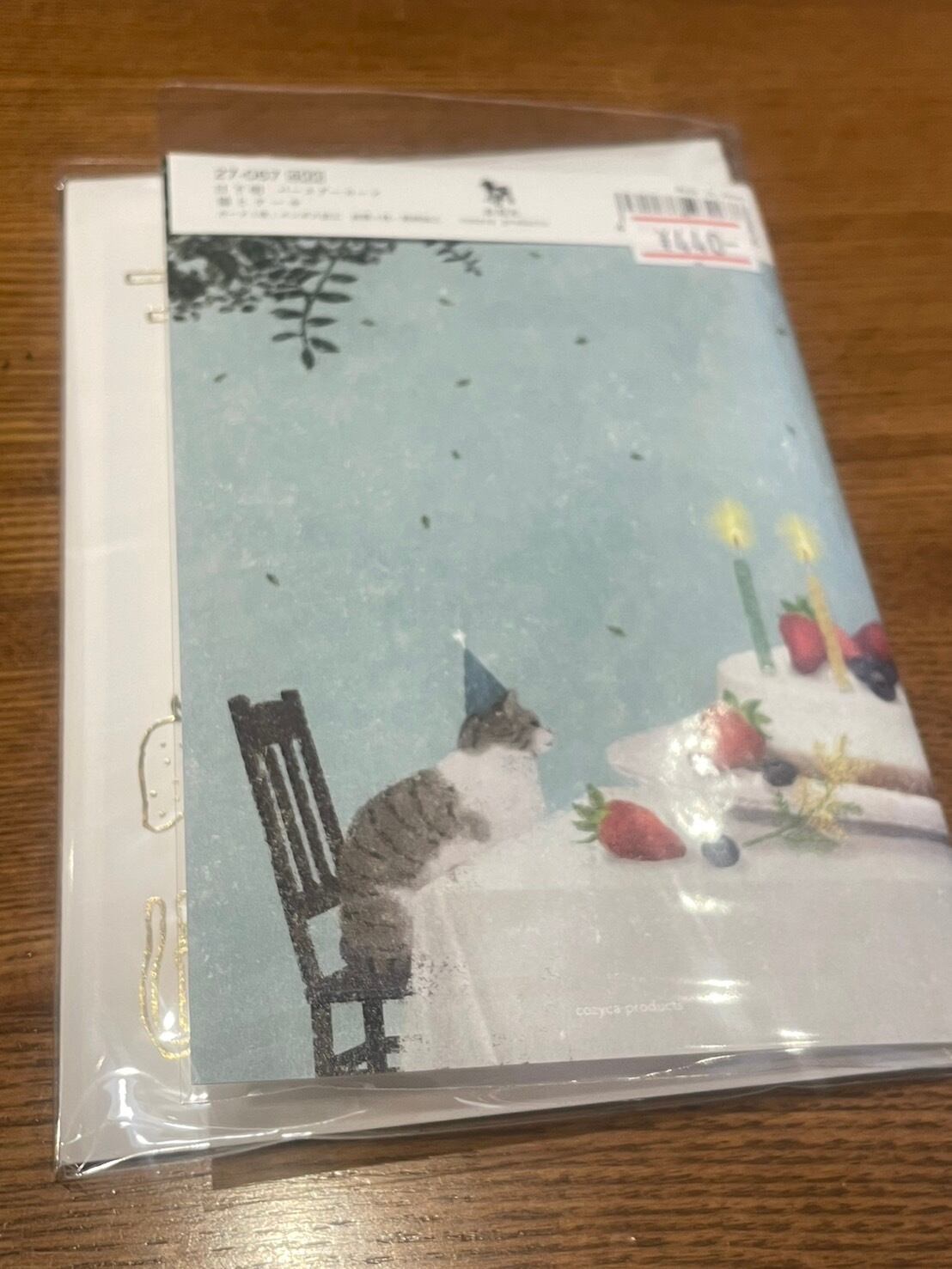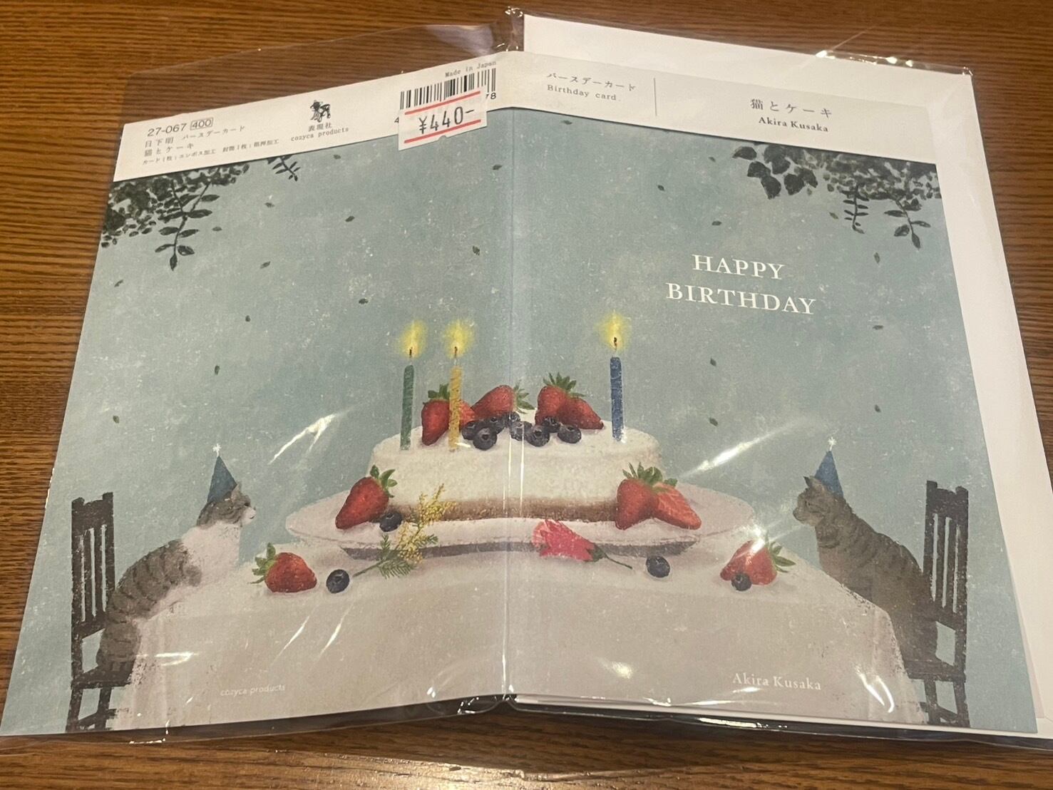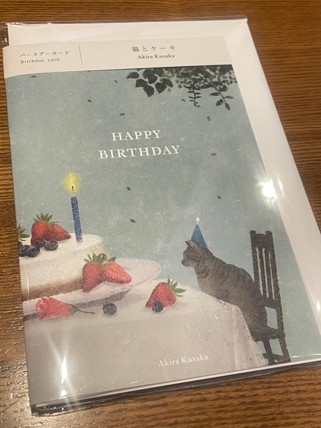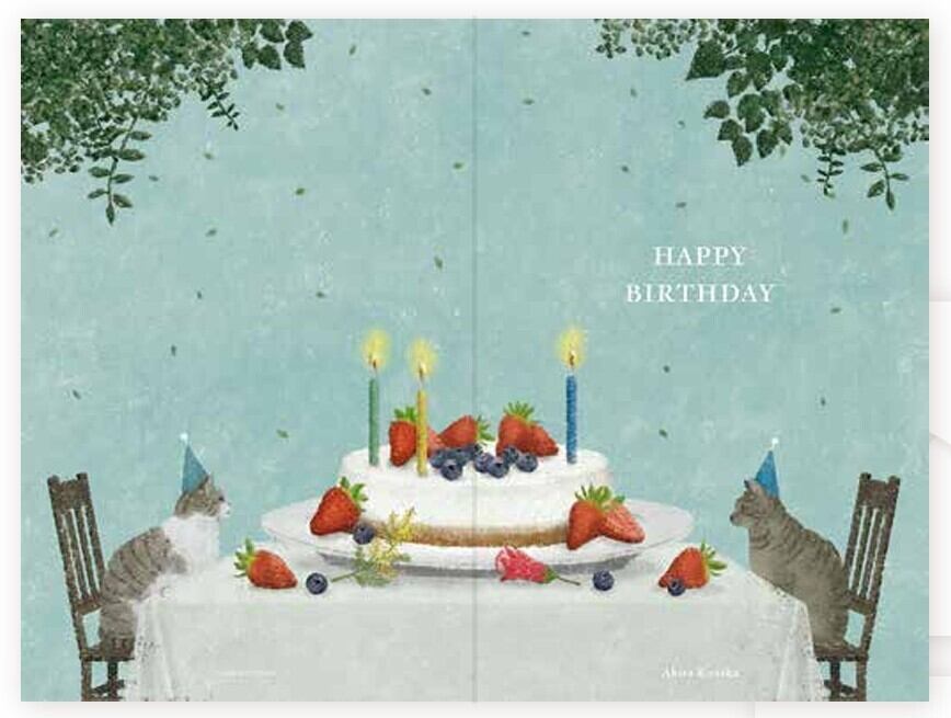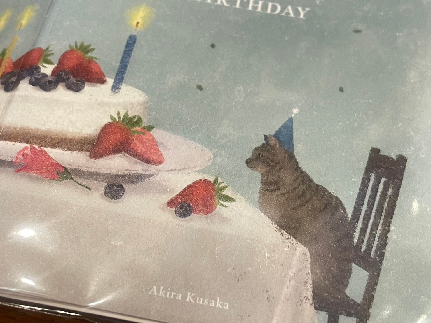 日下明:バースデーカード:猫とケーキ**静かで暖かみのあるイラスト**