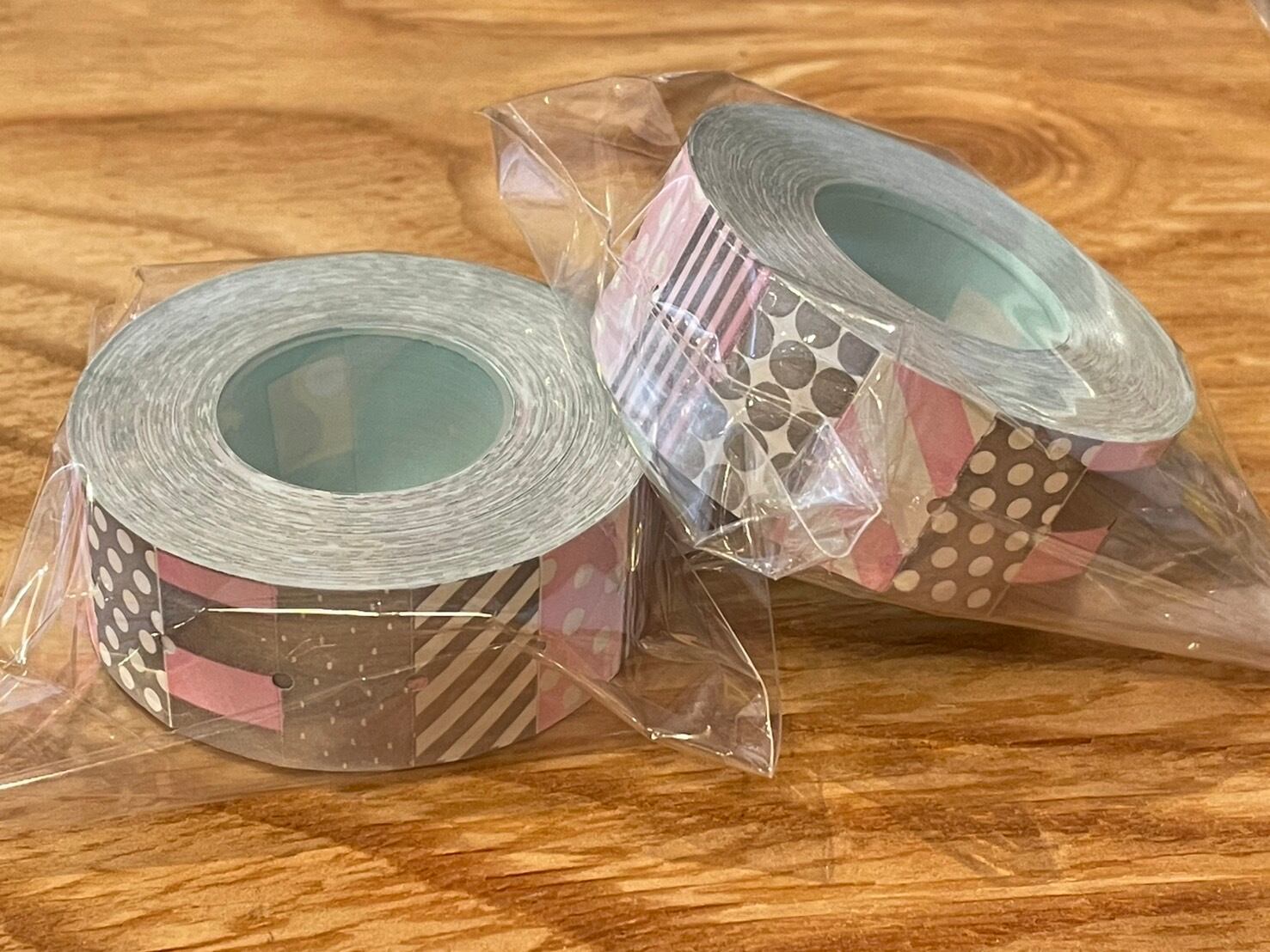 Sublo × 水縞:ラベラーロールシール 8図柄:水縞 ピンク×グレー**水玉、縞々カタチを楽しむ文具**