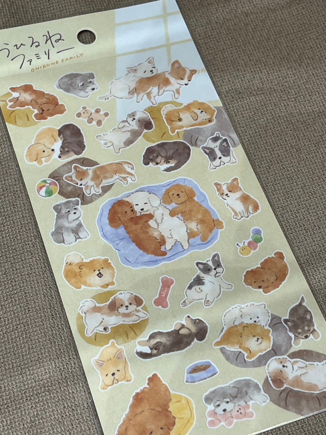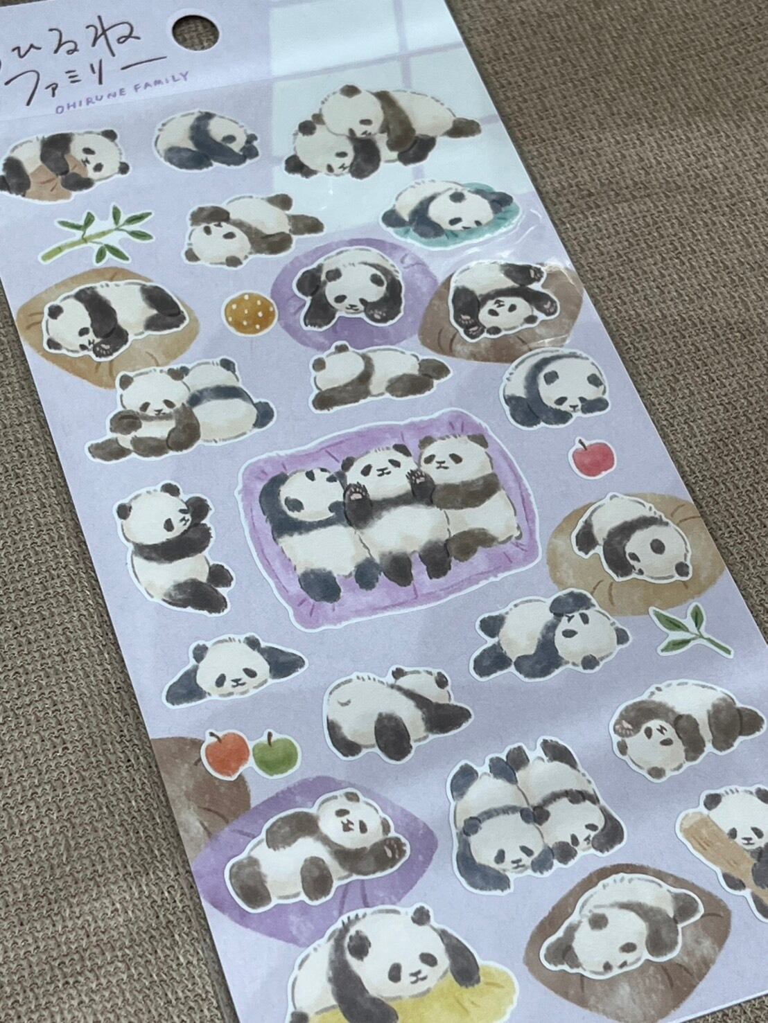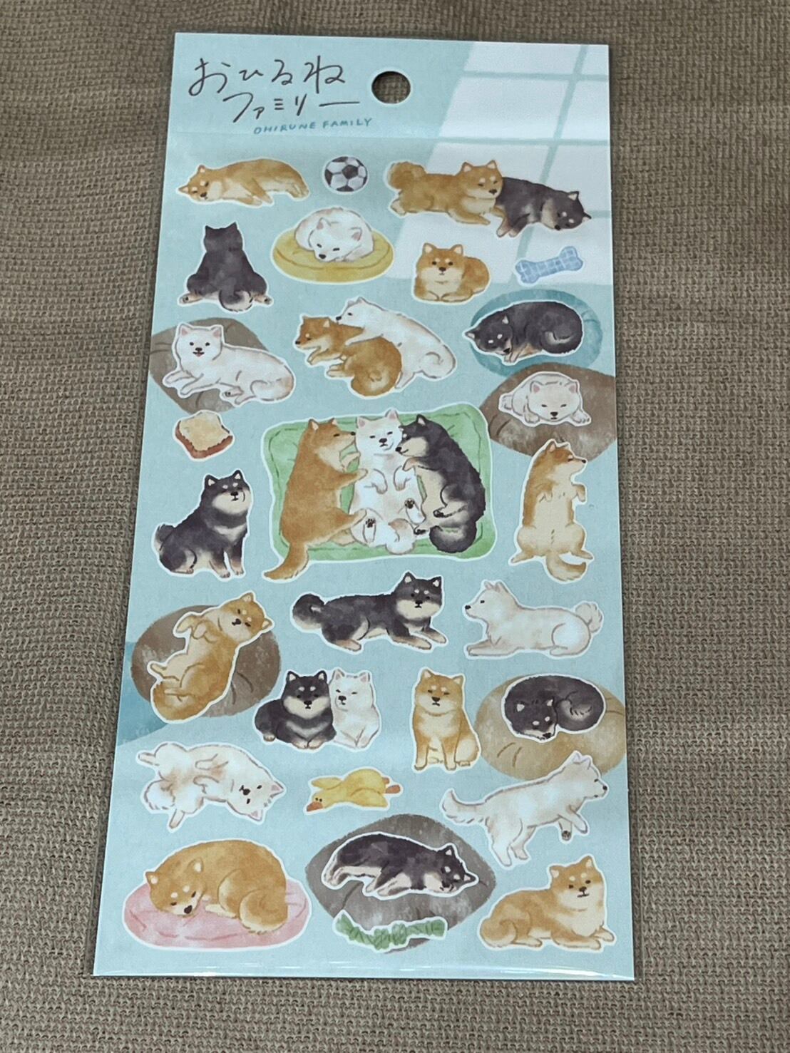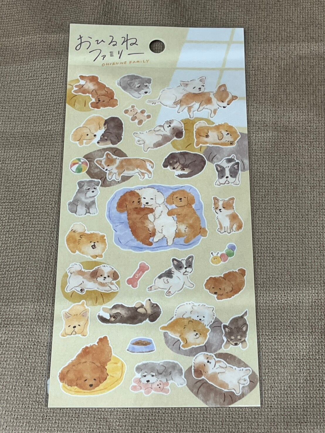 シール:おひるねアニマル:ねこ1・犬・パンダ・うさぎ・ねこ2・柴犬**フラットシールも可愛い**