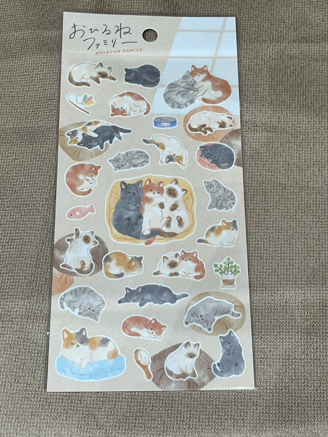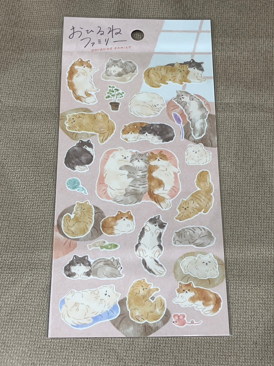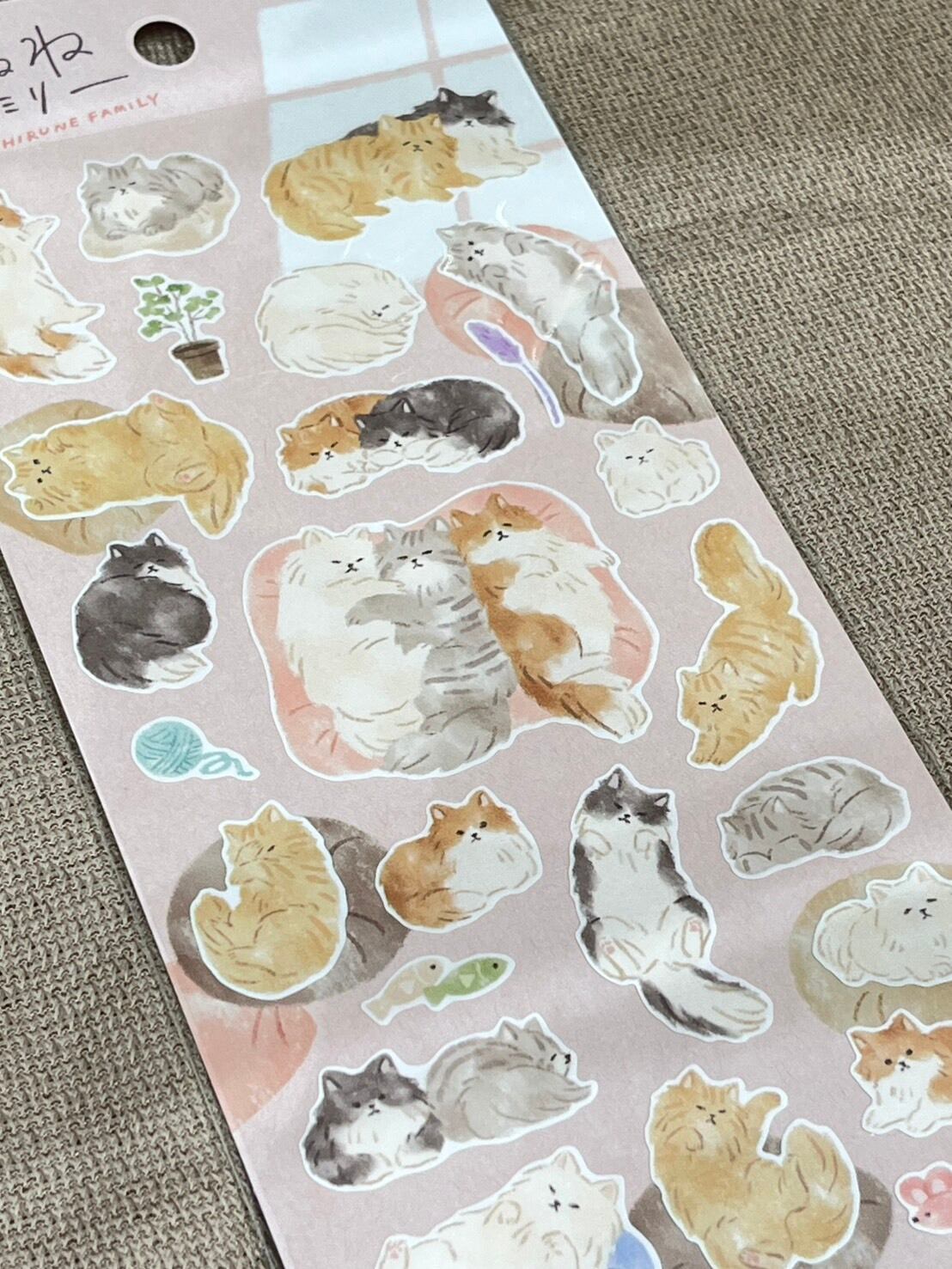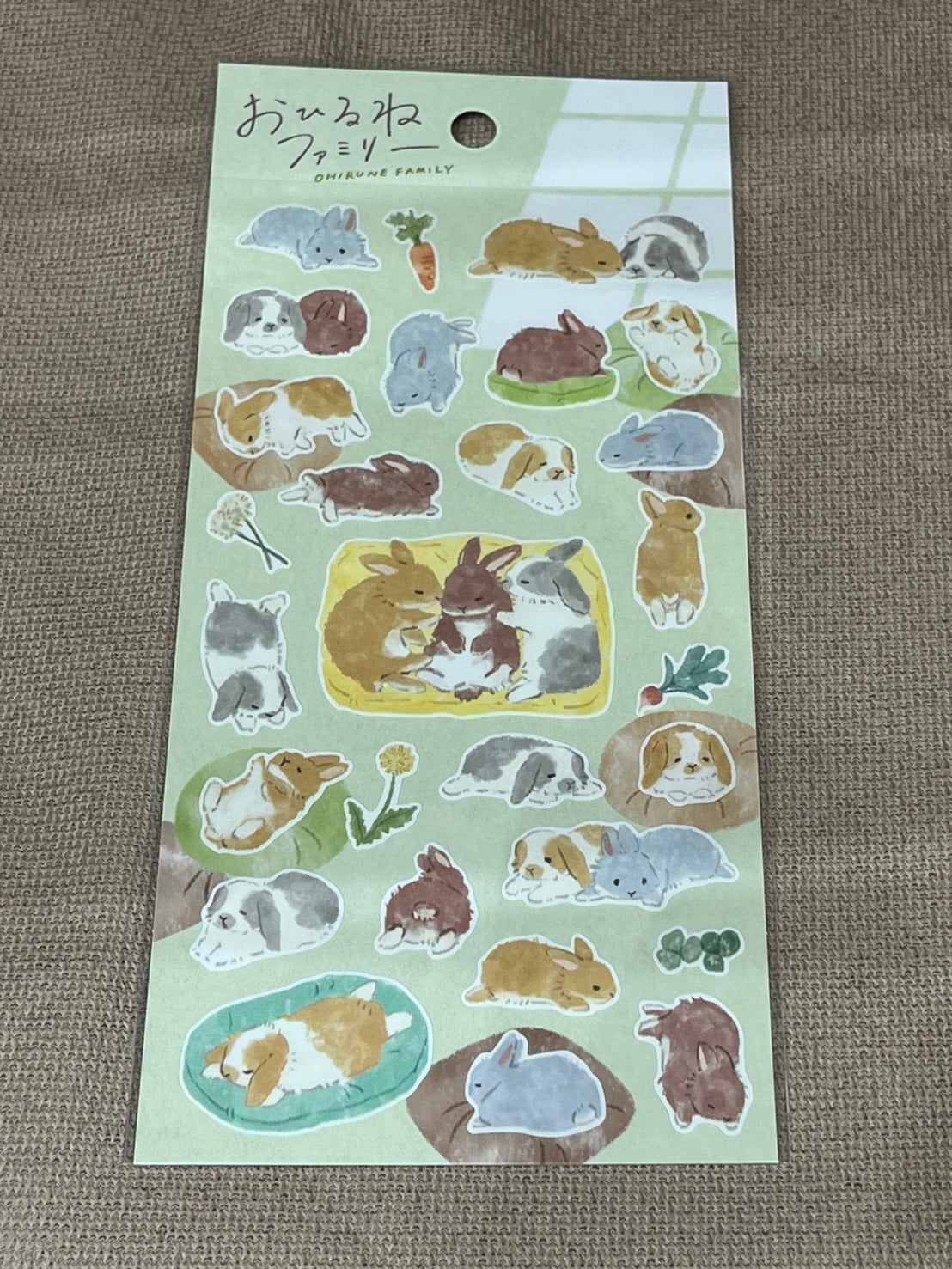 シール:おひるねアニマル:ねこ1・犬・パンダ・うさぎ・ねこ2・柴犬**フラットシールも可愛い**