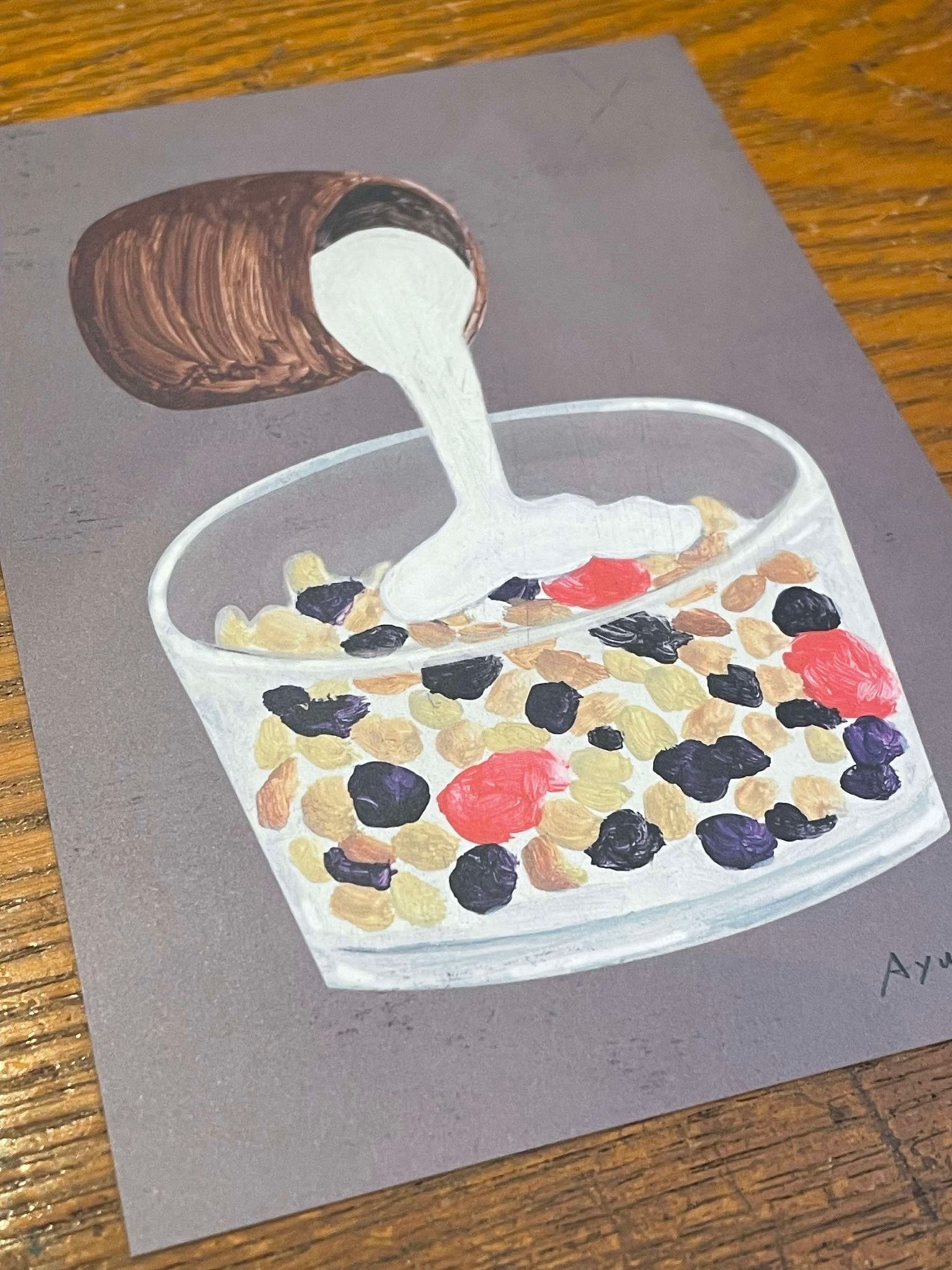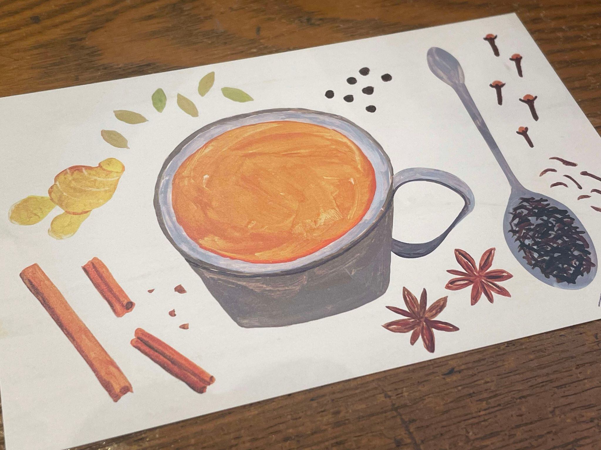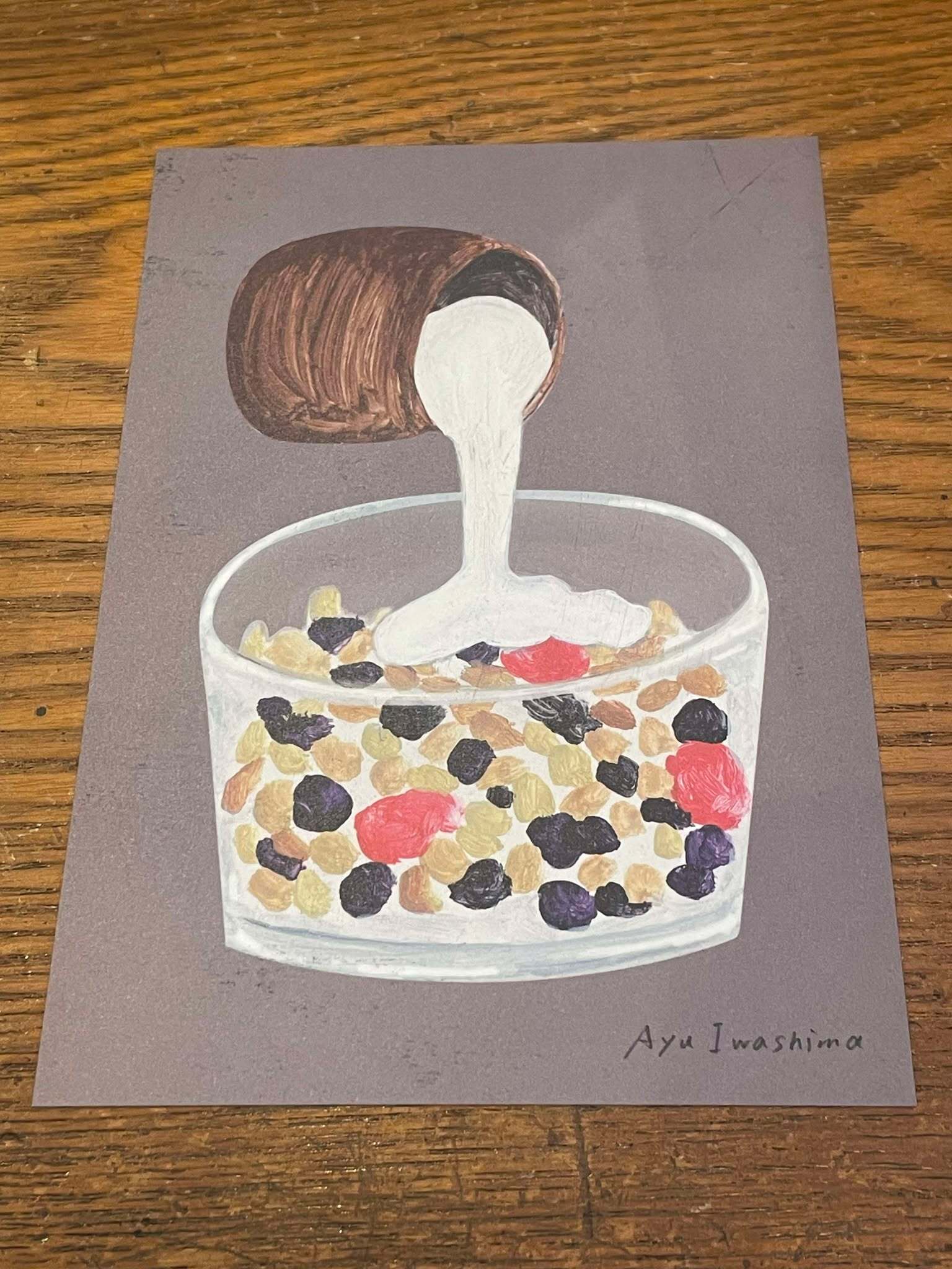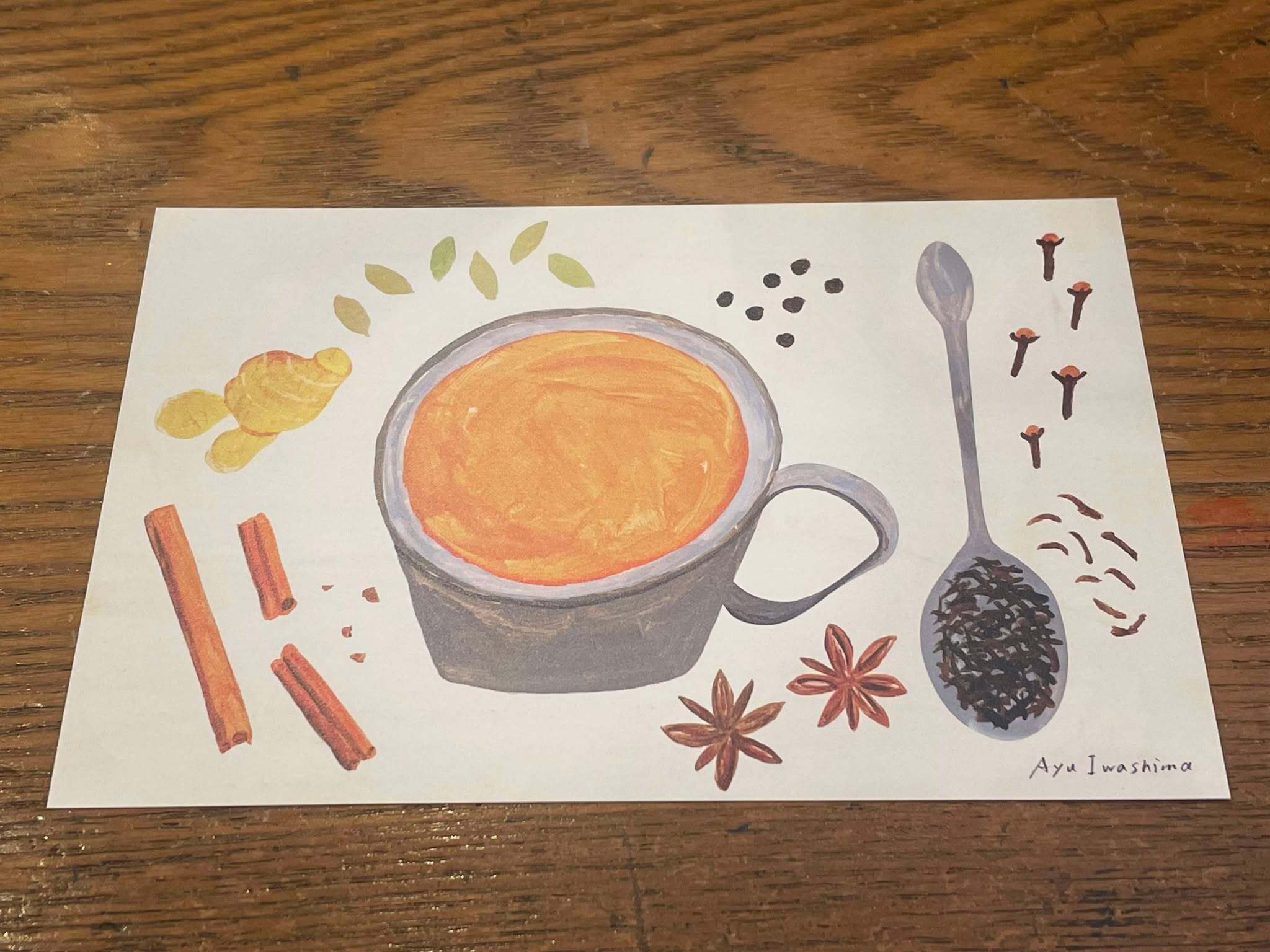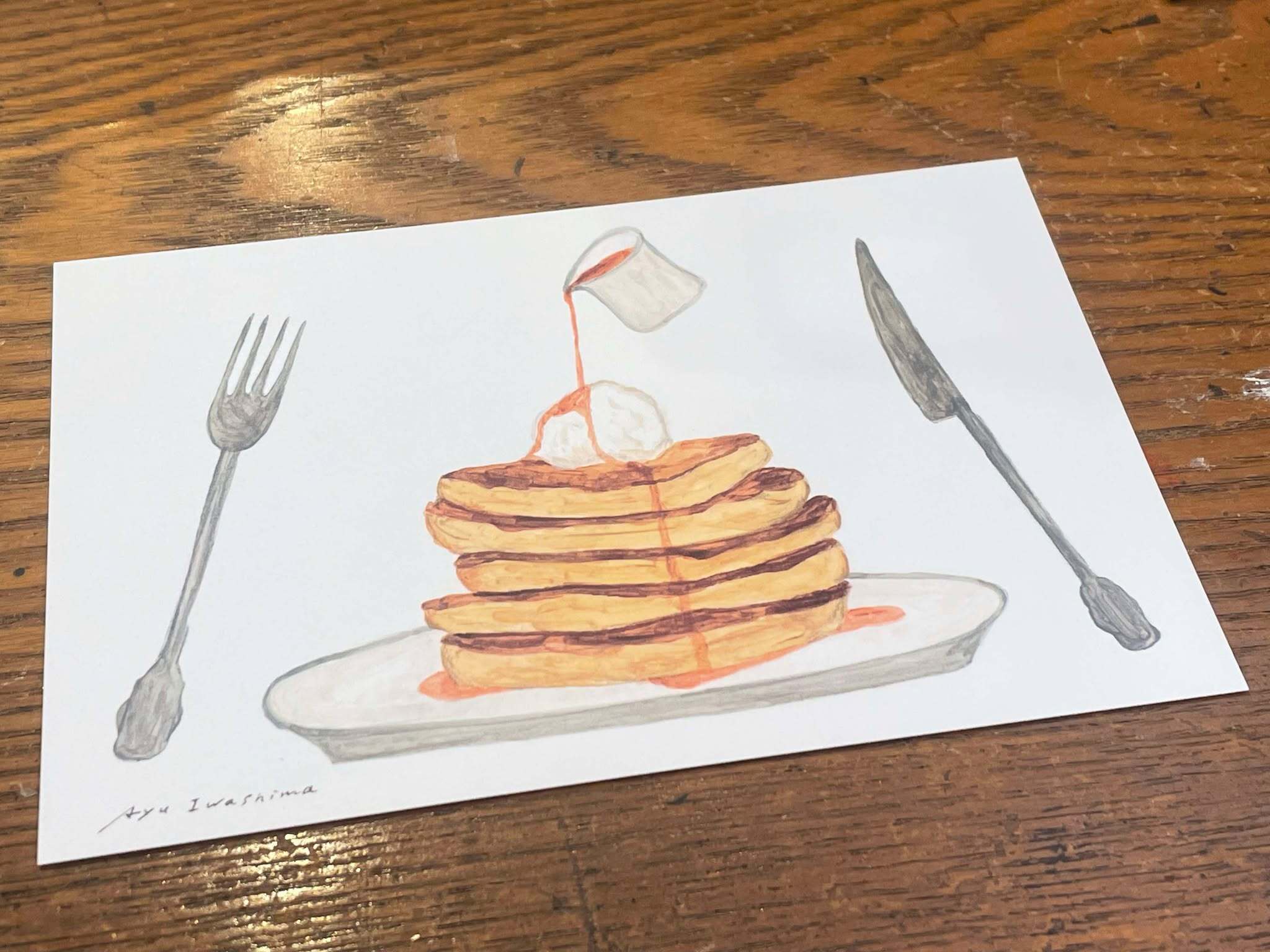 いわしまあゆ:ポストカード:卵トーストとコーヒー・チャイ・グラノーラ・パンケーキ・焼きリンゴ**ホッとするイラストを日常に**